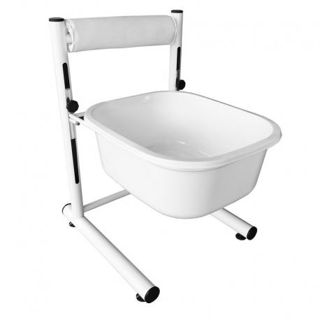 Výškově nastavitelná pedikérská vanička s kontrukcí.